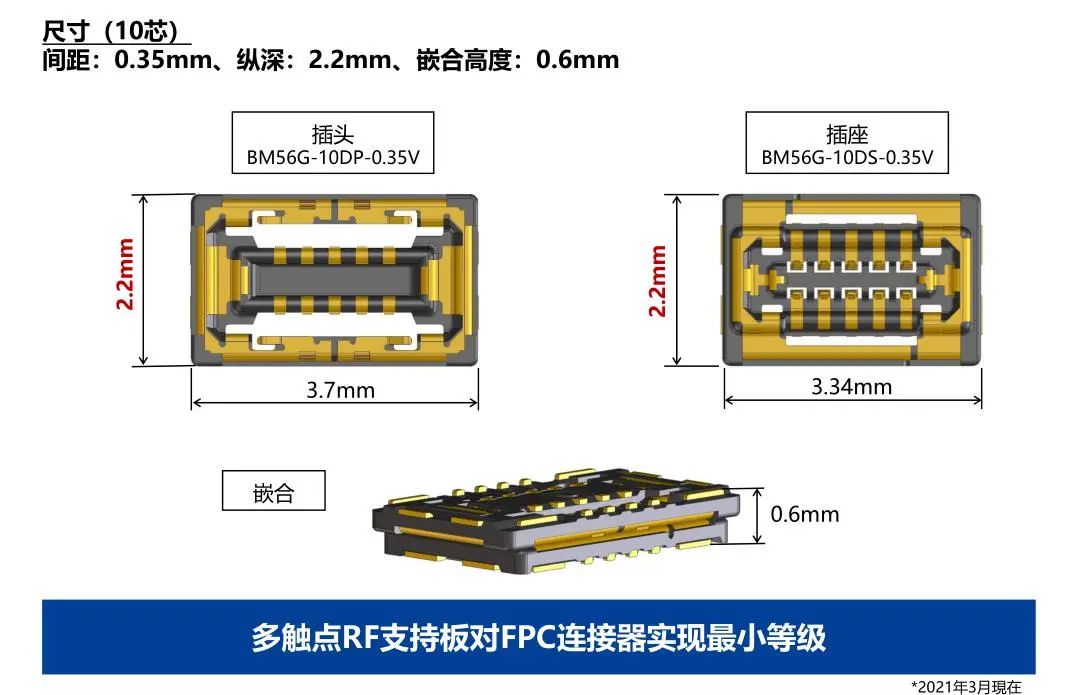 尺寸 省空间 防燥对策 RF特性(连接器单体) RF特性(连接器+FPC) 牢固构造 端子锁扣构造 通过金属诱导实现了较大的自校正量